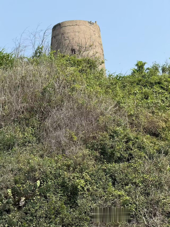 就在这绿树草丛的掩映里,一座碉楼兀自强着。灰色的砖,圆形的身,顶上长了些杂草,仿佛在风里微微地摇晃——那不外是我的错觉。它立得很高,实在在岛脊的最高处,俯看着整片海滩。