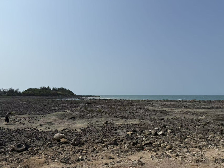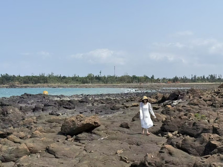 雷公岛位于海南岛北部儋州海域,是一座由第四纪火山喷发变成的迷你离岛,面积不及百亩。相传古时雷公曾在此劈石降妖,故而得名。岛上不见沙土,遍覆玄色火山岩,平素里孤悬海上,唯有落潮时,一条礁石遍布的海路才将它与陆地再行相连。咱们来时恰逢落潮——平素里离隔陆地的海水不知退到了何处,只留住一派湿淋淋的海滩,黑黝黝地铺向岛去。