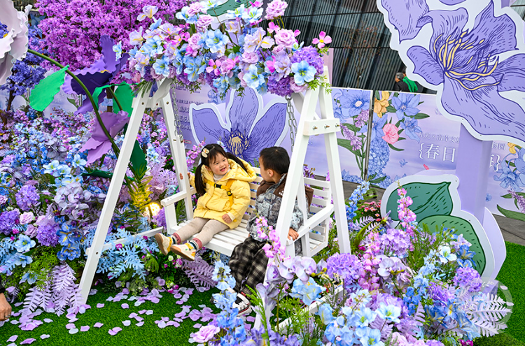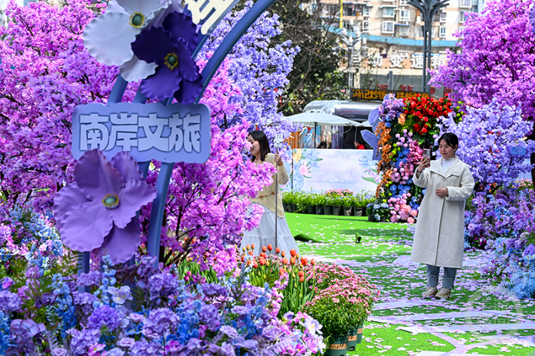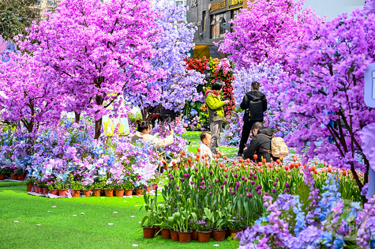 3月7日,在重庆市南坪商圈,南山植物园和协信星光期间广场共同打造的1000㎡春日花海,给市民带来烂漫春意。