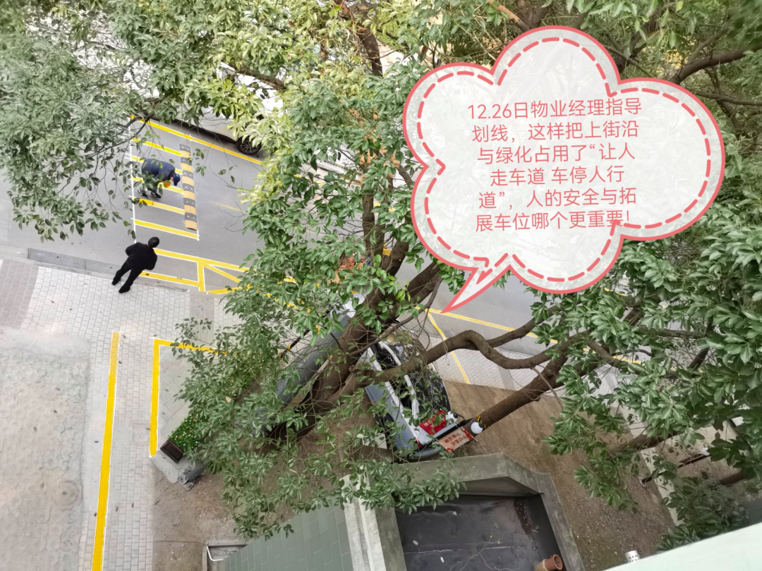 沈先生给上海电台《海波热线》打回电话,小区物业在西门右侧东说念主行通说念上划出不少侧泊车位,天然车位数增多了,然而沈先生以为好端端的东说念主行通说念何如能用作泊车?这么一来,行东说念主该往那儿走呢?