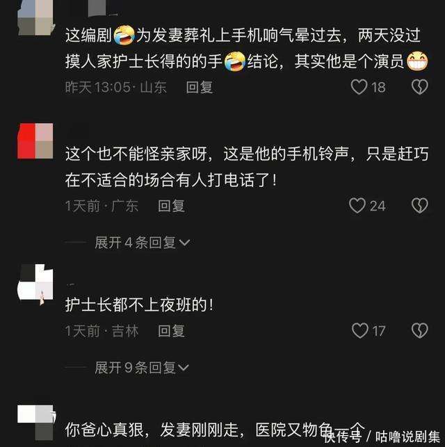 我们先来说说这剧里的第一雷。葬礼诶,那是何等尊严隆重的局势啊,在我们传统不雅念里,那是充满着悲伤和敬意的。然而这部剧里呢?张国立教练饰演的老解释刚经历了饱读盆之戚,在葬礼上,亲家母许娣饰演的扮装那手机遽然就响起了欣慰的《好日子》的布景音乐。这一下就像是在安心的湖面上投下了一颗炸弹,片刻杂乱了那种应有的隆重氛围。然后这位亲家母的扮演更是让东谈主恍朦胧惚,就像是开启了“干打雷不下雨”的哭丧模式,嘴里喊着悲伤,可神情和动作却像是在应酬差使。何况啊,因为鲜花不清新就速即发飙,这操作真的是让东谈主难以长入。我盯着屏幕的时候就在想,这到底是葬礼照旧小品现场啊?这弹幕就像是被燃烧的炸药桶同样,一下子就炸了,“薛甄珠(《前半生》经典扮装)穿越了吧!殡仪馆当菜市集呢?”我合计这譬如相配贴切,这完全便是把葬礼当成了一场闹剧。