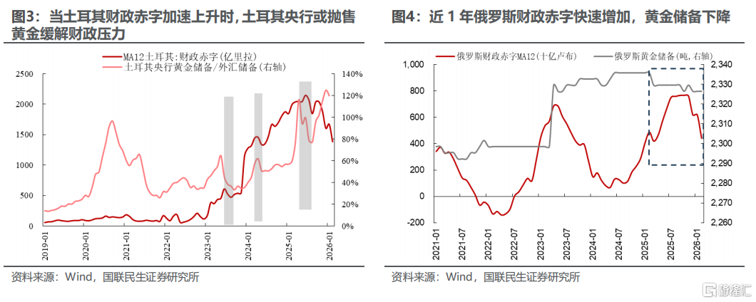 二是财政赤字短期快速上升,央行“被迫”抛售黄金以欣忭流动性支拨。比如土耳其,土耳其财政赤字快速上升后,央行或“逼不得已”抛售黄金以疏浚好意思元;比喻俄罗斯,俄罗斯在2025年财政赤字快速上升后,俄罗斯央行相似启动“被迫”减捏黄金以疏浚对俄乌冲突的财力支捏。