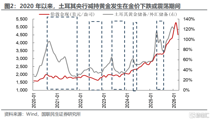 一是“陪伴趋势”的机构当作。从内容上来看,央行在黄金中相似饰演着“机构投资者”的脚色。以土耳其央当作例,当黄金价钱处于震撼盘整时分时,土耳其央行频频会抛售黄金;与之相背的是,在金价加快高涨时,土耳其央行相似在加快购金。