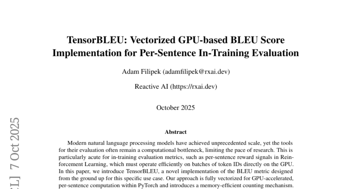 说到底,TensorBLEU的出现措置了一个看似渺小但试验影响久了的本事瓶颈。它不仅让筹商东说念主员概况更高效地考试和评估谈话模子,更蹙迫的是展示了若何通过好意思妙的算法假想来充分阐扬当代硬件的后劲。这项筹商教导咱们,偶然候最大的创新不是发明全新的办法,而是用全新的格式杀青已有的功能。